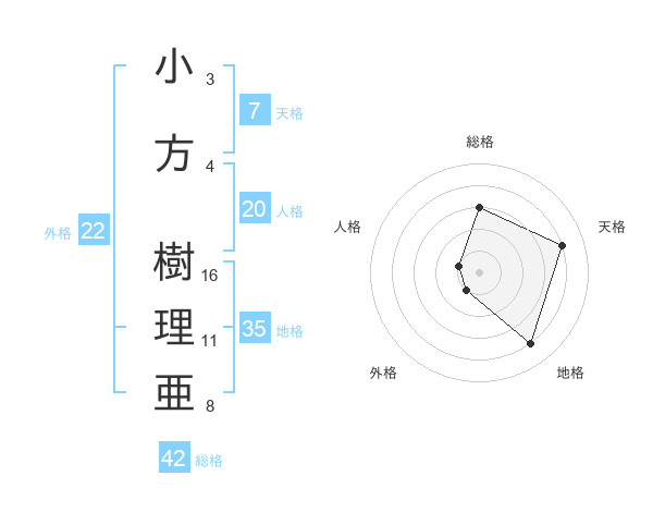 小方 樹理亜さんを姓名の画数から五運を鑑定