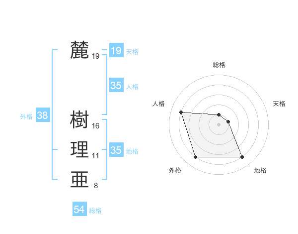 麓 樹理亜さんの外格は38画の4点!