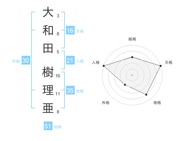 大和田 樹理亜さんを姓名の画数から五運を鑑定