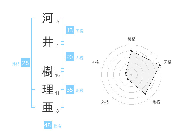 河井 樹理亜さんを姓名の画数から五運を鑑定