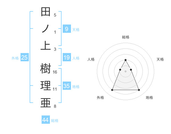 田ノ上 樹理亜さんの総格は44画の2点!