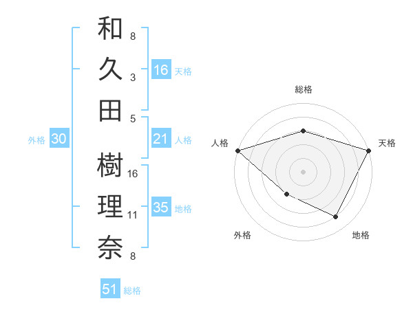 和久田 樹理奈さんの天格は16画の5点!