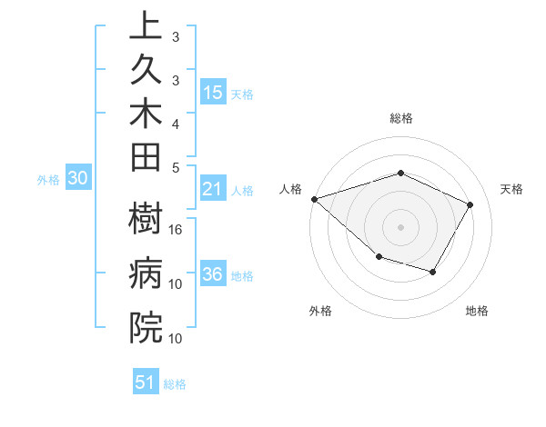 上久木田 樹病院さんを姓名の画数から五運を鑑定