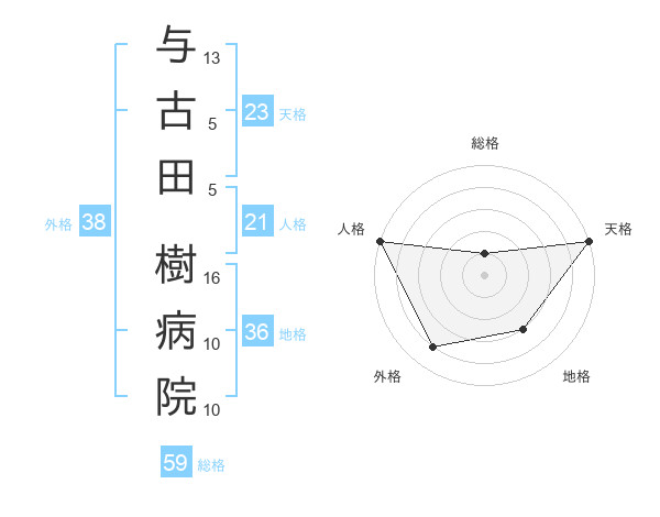 与古田 樹病院さんを姓名の画数から五運を鑑定