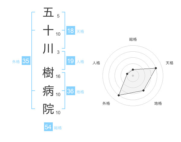 五十川 樹病院さんを姓名の画数から五運を鑑定