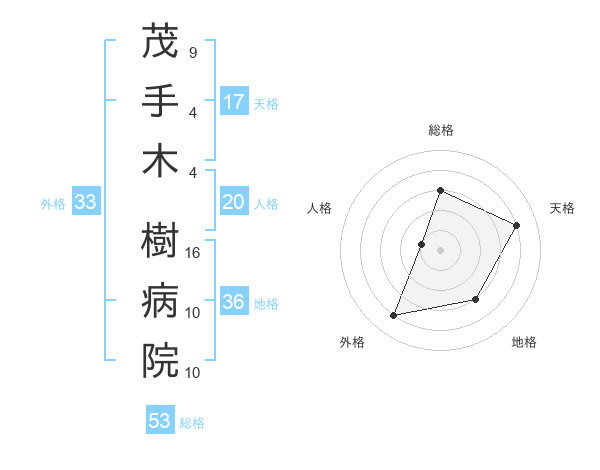 茂手木 樹病院さんを姓名の画数から五運を鑑定