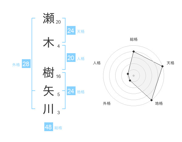 瀬木 樹矢川さんの総格は48画の4点