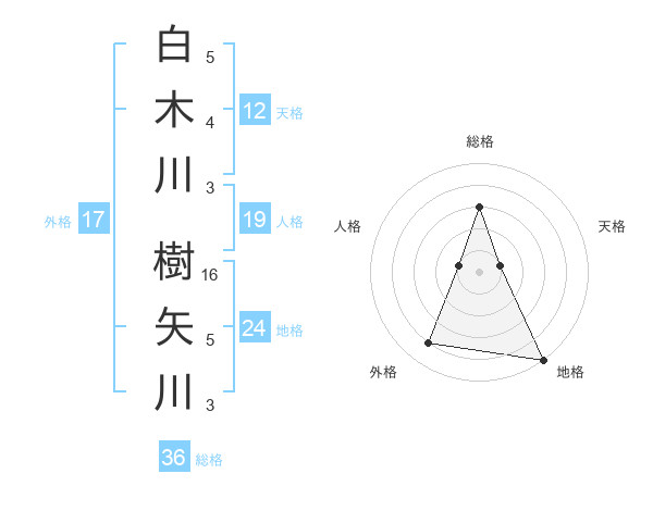 白木川 樹矢川さんを姓名の画数から五運を鑑定