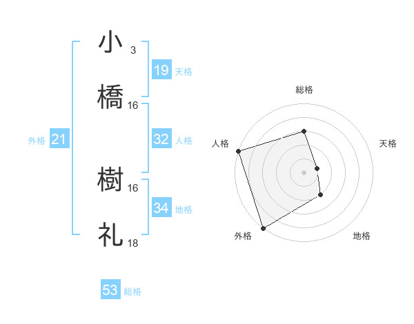 小橋 樹礼さんを姓名の画数から五運を鑑定