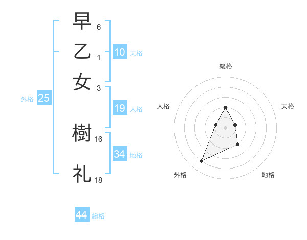 早乙女 樹礼さんの総格は44画の2点