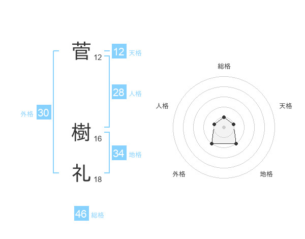 菅 樹礼さんの総格は46画の1点!