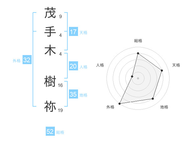 茂手木 樹祢さんを姓名の画数から五運を鑑定