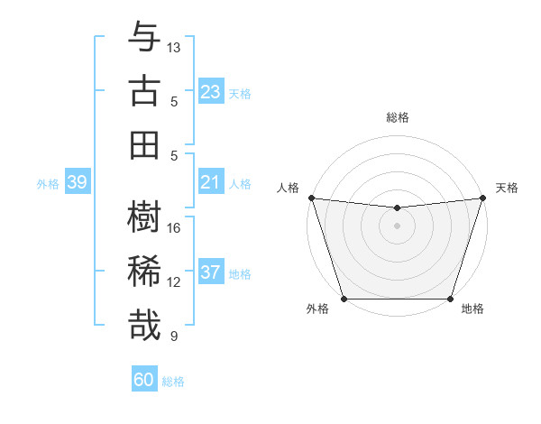 与古田 樹稀哉さんを姓名の画数から五運を鑑定