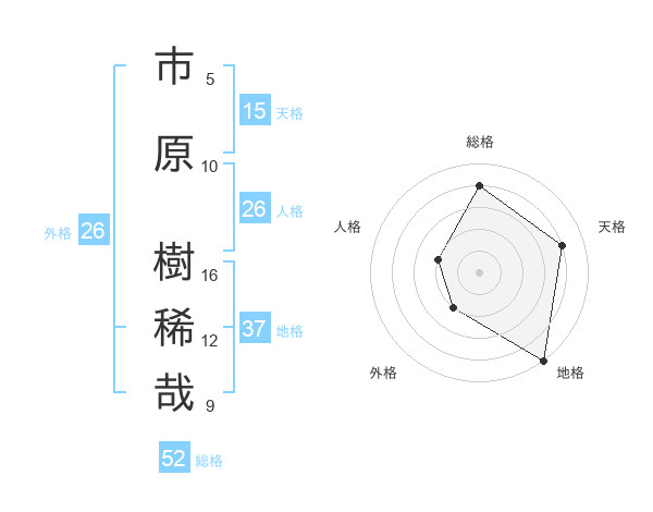 市原 樹稀哉さんの地格は37画の5点!