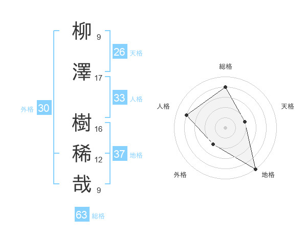 柳澤 樹稀哉さんの地格は37画の5点!