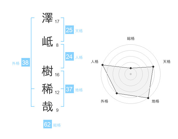 澤岻 樹稀哉さんを姓名の画数から五運を鑑定