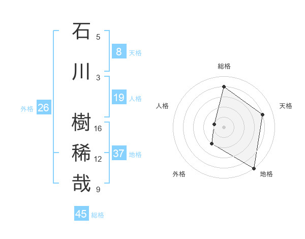 石川 樹稀哉さんの地格は37画の5点!