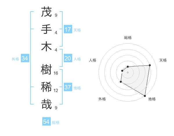 茂手木 樹稀哉さんを姓名の画数から五運を鑑定