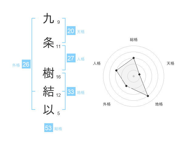九条 樹結以さんを姓名の画数から五運を鑑定