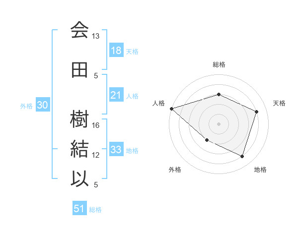 会田 樹結以さんを姓名の画数から五運を鑑定