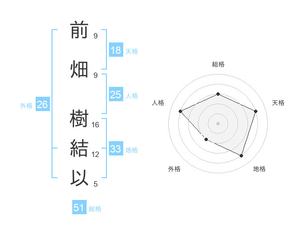 前畑 樹結以さんを姓名の画数から五運を鑑定