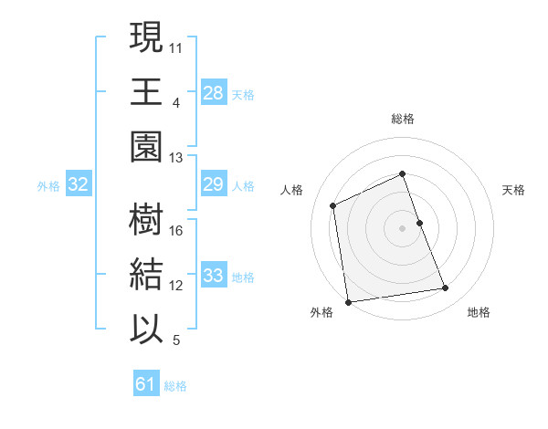 現王園 樹結以さんの地格は33画の4点