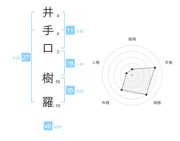 井手口 樹羅さんを姓名の画数から五運を鑑定