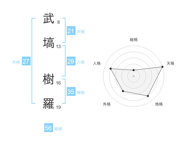 武塙 樹羅さんを姓名の画数から五運を鑑定