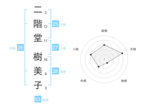 二階堂 樹美子さんを姓名の画数から五運を鑑定