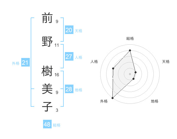 前野 樹美子さんの総格は48画の4点!