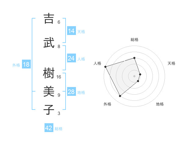 吉武 樹美子さんを姓名の画数から五運を鑑定