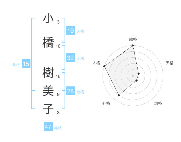 小橋 樹美子さんを姓名の画数から五運を鑑定