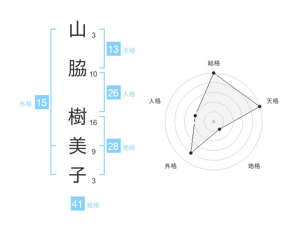 山脇 樹美子さんを姓名の画数から五運を鑑定