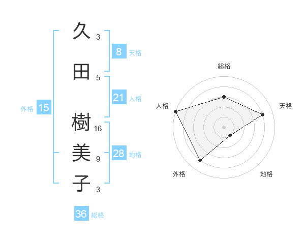 久田 樹美子さんを姓名の画数から五運を鑑定