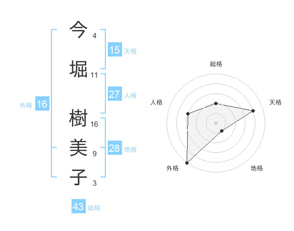 今堀 樹美子さんを姓名の画数から五運を鑑定