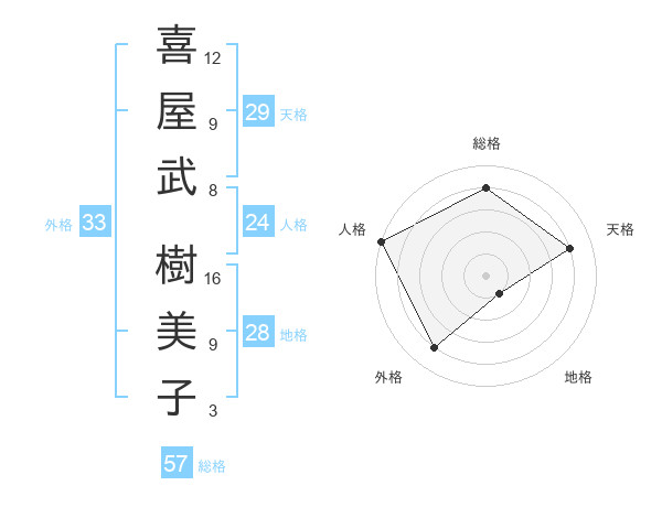 喜屋武 樹美子さんの外格は33画の4点!