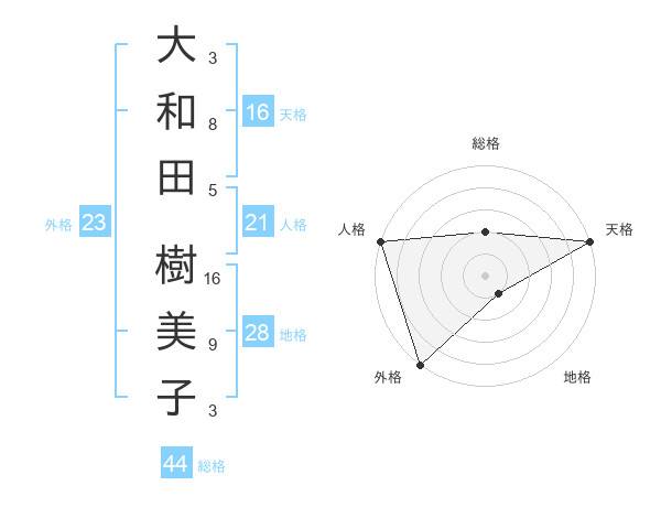 大和田 樹美子さんを姓名の画数から五運を鑑定
