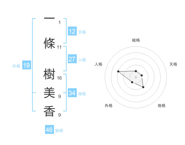 一條 樹美香さんを姓名の画数から五運を鑑定