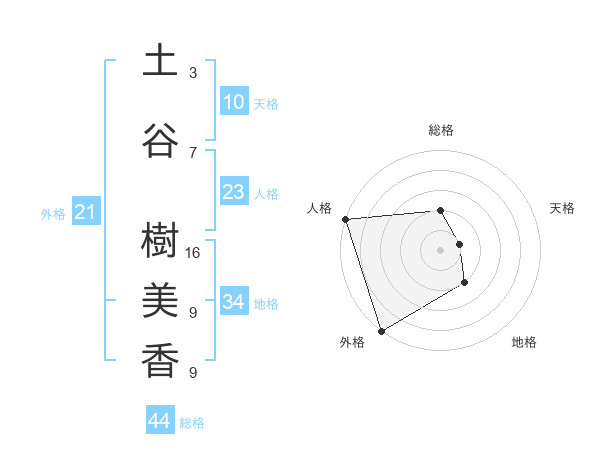 土谷 樹美香さんを姓名の画数から五運を鑑定