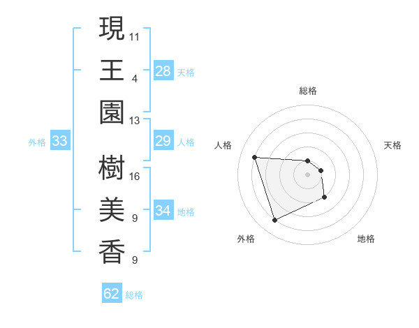 現王園 樹美香さんを姓名の画数から五運を鑑定