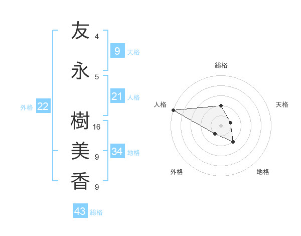 友永 樹美香さんを姓名の画数から五運を鑑定