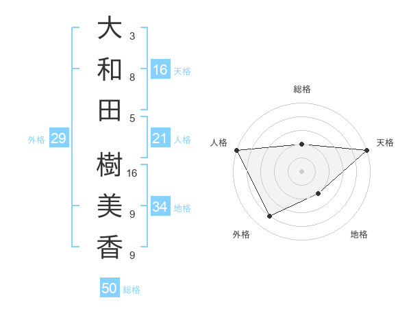 大和田 樹美香さんを姓名の画数から五運を鑑定