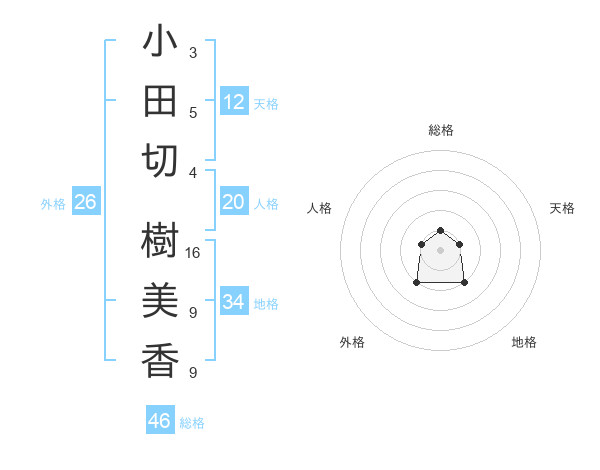 小田切 樹美香さんを姓名の画数から五運を鑑定