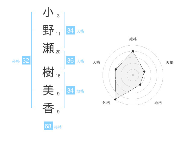 小野瀬 樹美香さんの総格は68画の4点