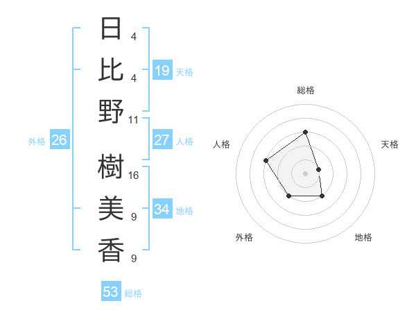 日比野 樹美香さんを姓名の画数から五運を鑑定