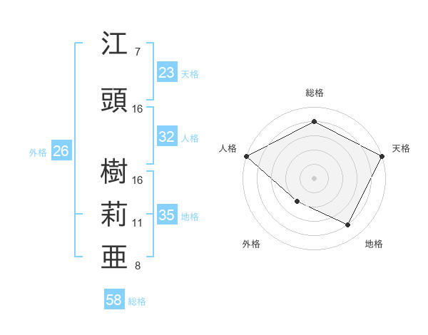 江頭 樹莉亜さんの総格は58画の4点!