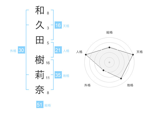 和久田 樹莉奈さんの天格は16画の5点!