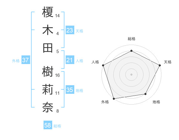 榎木田 樹莉奈さんの総格は58画の4点!