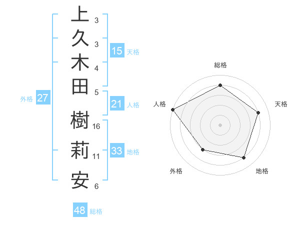上久木田 樹莉安さんを姓名の画数から五運を鑑定