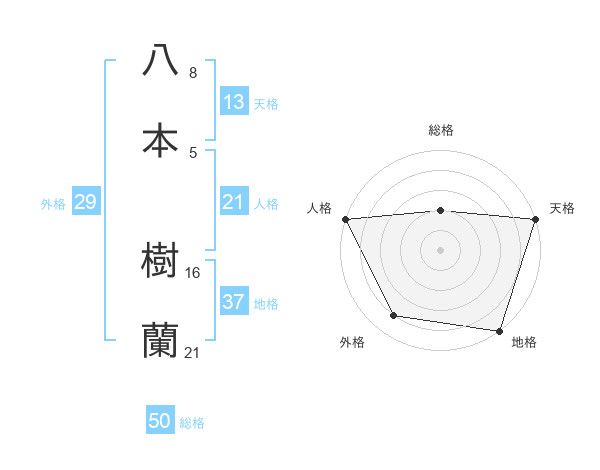 八本 樹蘭さんの総格は50画の2点!
